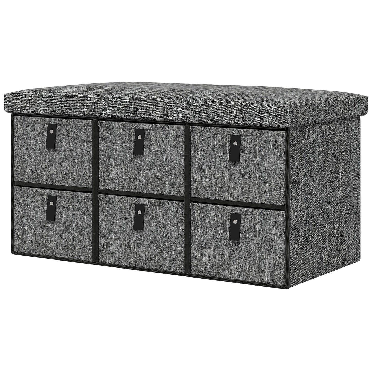 Shoe Bench with Seat, Shoe Storage Bench with Cushion and 6 Fabric Drawers for Entryway, Hallway, Living Room, Bedroom, Dark Grey